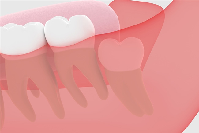 このように横に生えていると、7番目の歯と親知らずの隙間に細菌が溜まり、虫歯になったり、周囲の歯肉が腫れたりする原因となります。